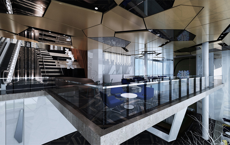 售樓處做為整個樓盤的重要組成部分,不但要完全不同于當(dāng)前過于單調(diào)的售樓場所,更要體現(xiàn)房地產(chǎn)商的品味,因此,我們把它定位于一個售樓部和休閑場所兩用來考慮,體現(xiàn)了休閑與豪華的都會空間,突出了現(xiàn)代、宏偉的效果。