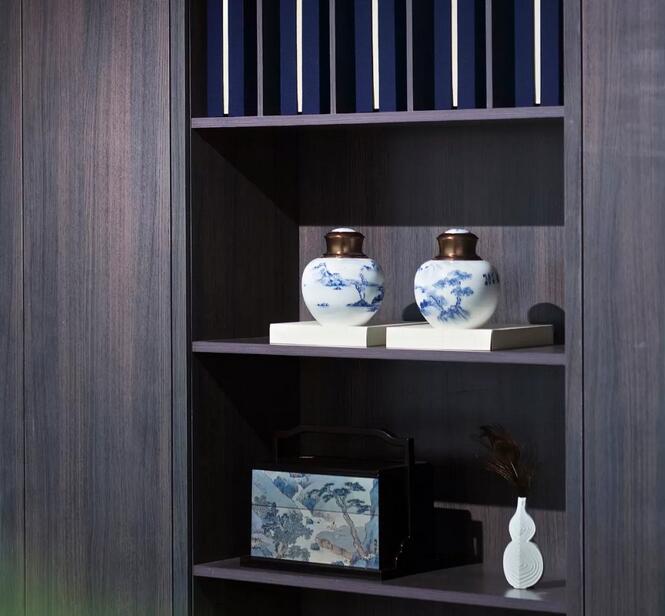 空間中大量使用的木飾面營(yíng)造出難得一遇的明代中式氛圍。正如計(jì)成在《屋宇》中指出明代住宅的設(shè)計(jì)原則之“時(shí)尊普雅,古擇端方”,意為追趨時(shí)尚要遵依典雅樸素,仿古則取端莊大方。這也是兩位設(shè)計(jì)師在對(duì)待傳統(tǒng)和創(chuàng)新設(shè)計(jì)時(shí)所采取的態(tài)度。