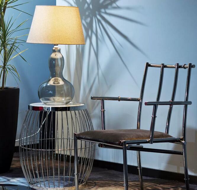 傳統(tǒng)中式的座椅泛著金屬光澤,鳥(niǎo)籠般的邊幾造型別出心裁。復(fù)古的外觀與現(xiàn)代功能相結(jié)合,既滿足了懷舊情結(jié),又保證了現(xiàn)代生活的舒適與方便。