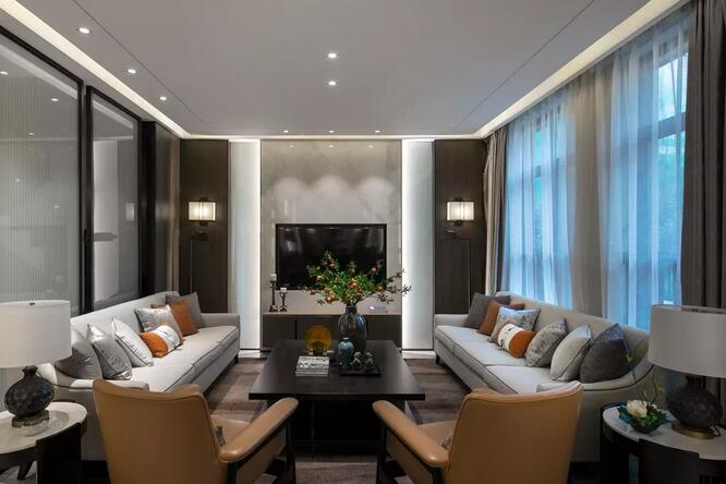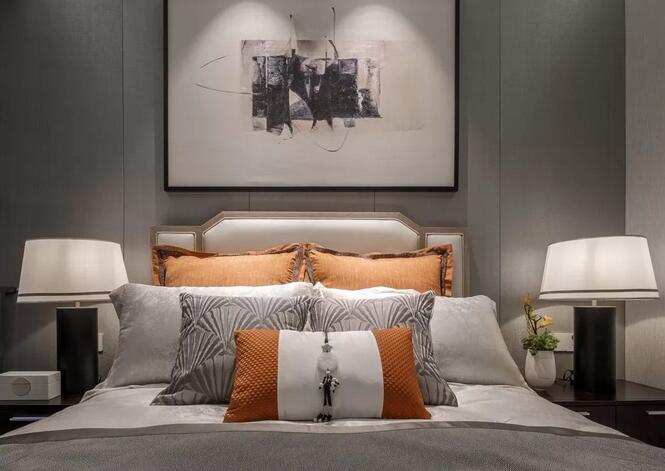 空間以?xún)?yōu)雅與低調(diào)的材質(zhì)為主,軟裝材料以有質(zhì)感的棉麻搭配帶有山水元素的絲光布,家具主要以深木飾面為主。