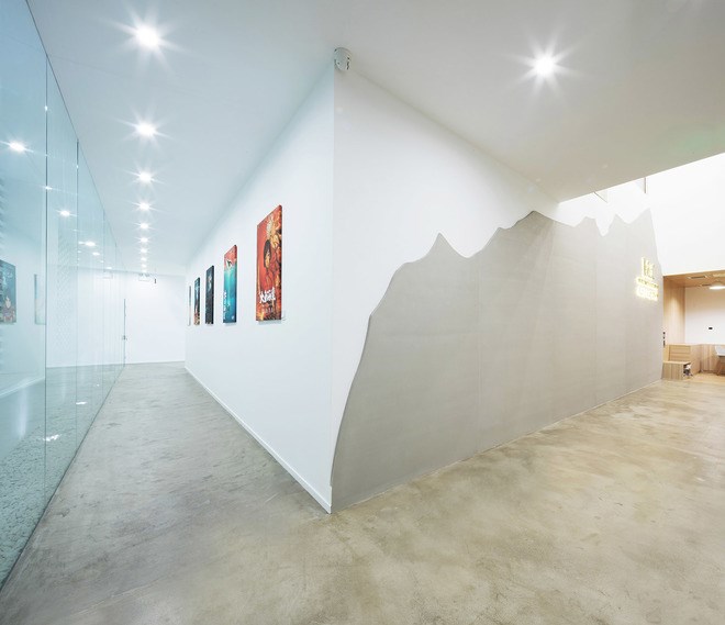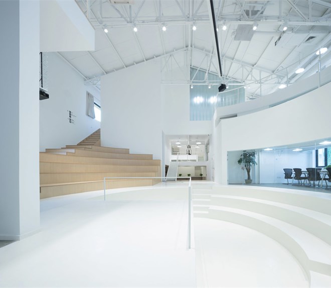 彼岸天總部辦公室位于吉里(北京)國際藝術區,其成名作中國動畫電影《大魚海棠》2017年于第15屆布達佩斯國際動畫電影節斬獲最佳動畫片。吉里(北京)國際藝術區內聚集了各類影視產業企業,大魚海棠的新辦公空間選定在9米層高的一座老廠房內。新空間保留了老廠房的屋架和外立面的圍護結構,在保持老廠房記憶的同時,重新設計了部分辦公空間的外墻,以及全部門窗和基礎,植入新的鋼結構進行功能體塊分割,達到新與舊的共融和碰撞。整個園區是灰蒙蒙的老廠房,而新空間外墻選用白色基調一直延伸到室內,搭配部分木材質感,給予通透和純凈的感受。