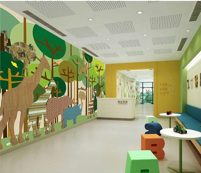 孩子們對大自然有一種特殊的情感,充滿了熱愛與好奇。設計師在兒童科室運用墻繪、造型、空間色彩為孩子們打造出一個大自然的場景。