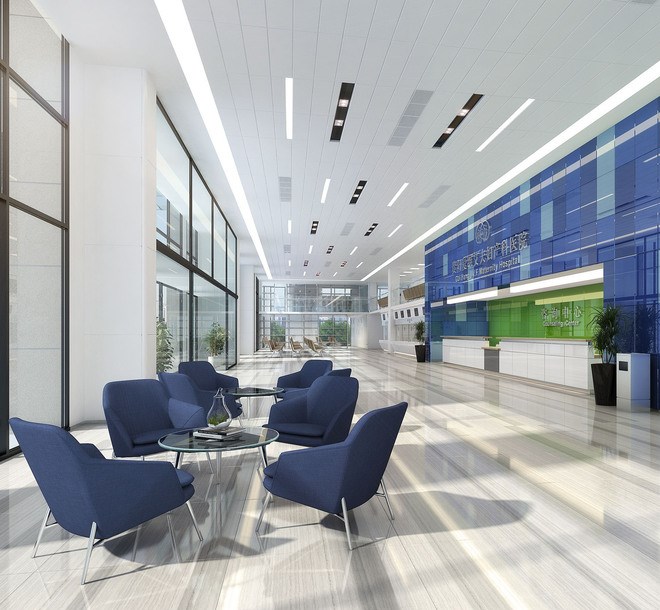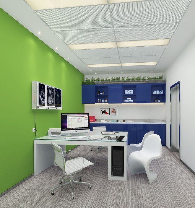 這兩種顏色都屬于可以給患者帶來安靜,平穩的心情的顏色,但這兩種顏色又是屬于冷色系,我們不能讓本來就冷冰的醫院再添加太多冷色系的元素,空間需要有動感,由暖色系來作為主色調。